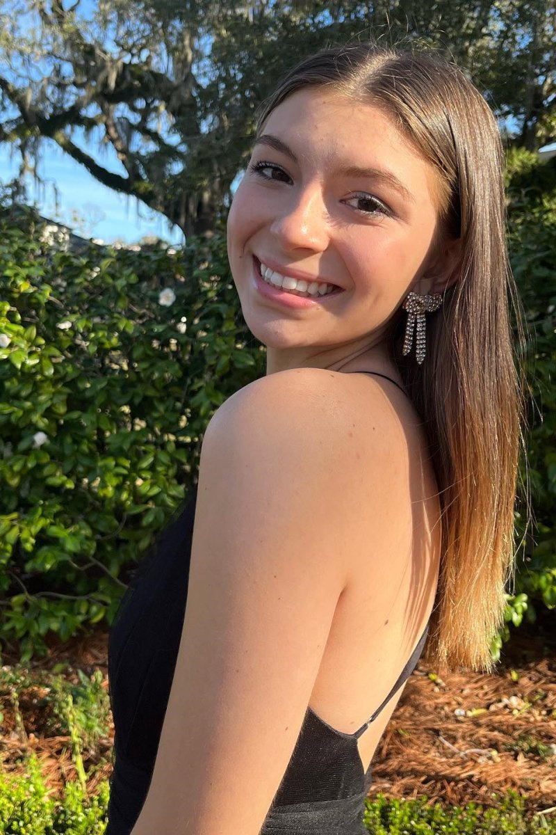 Adalyn | Black A-line Deep V Neck Cross Back Tulle Multi-Layers Long Prom Dress