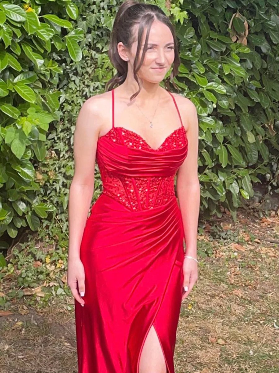Exude elegance and sophistication in the Khaki Spaghetti Straps Slit Mermaid Satin Prom Dress with Beadings. This refined dress features a sleek spaghetti straps neckline and a curve-enhancing mermaid silhouette that flows effortlessly to a dramatic floor-length finish. The luxurious satin fabric glimmers softly. creating an understated yet radiant effect. This dress is a perfect choice for both evening dresses and formal dresses. with its intricate beadings adorn the bodice. adding a touch of glamour. while the daring thigh-high slit adds a bold and sultry edge. The lace-up back ensures a customized and secure fit. making you feel as confident as you look. Perfect for prom or any formal occasion. this khaki masterpiece is a timeless blend of sophistication and allure.