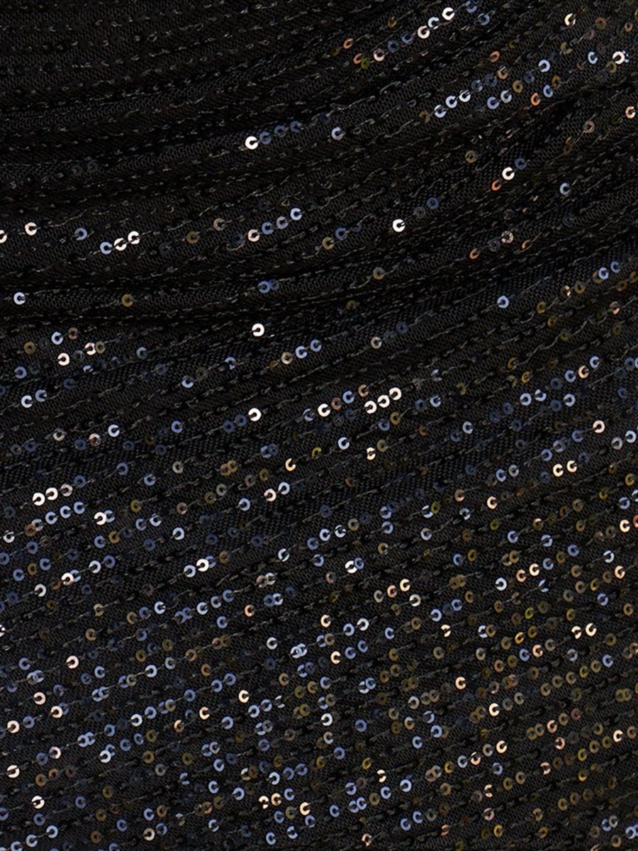 Introducing 'Greta'. the epitome of classic glamour with a twist. Designed in a figure-flaunting sheath style. this dress promises to accentuate your curves in all the right places. Radiate unmatched elegance with the shimmering sequin fabric that catches light from every angle. ensuring you stand out effortlessly. The spaghetti-strap V-neckline delicately frames your collarbone and neck. adding a touch of sultriness to this elegant ensemble. While the dress gracefully skims your figure. the criss-cross back design brings an element of surprise. showcasing a flirty yet sophisticated look.