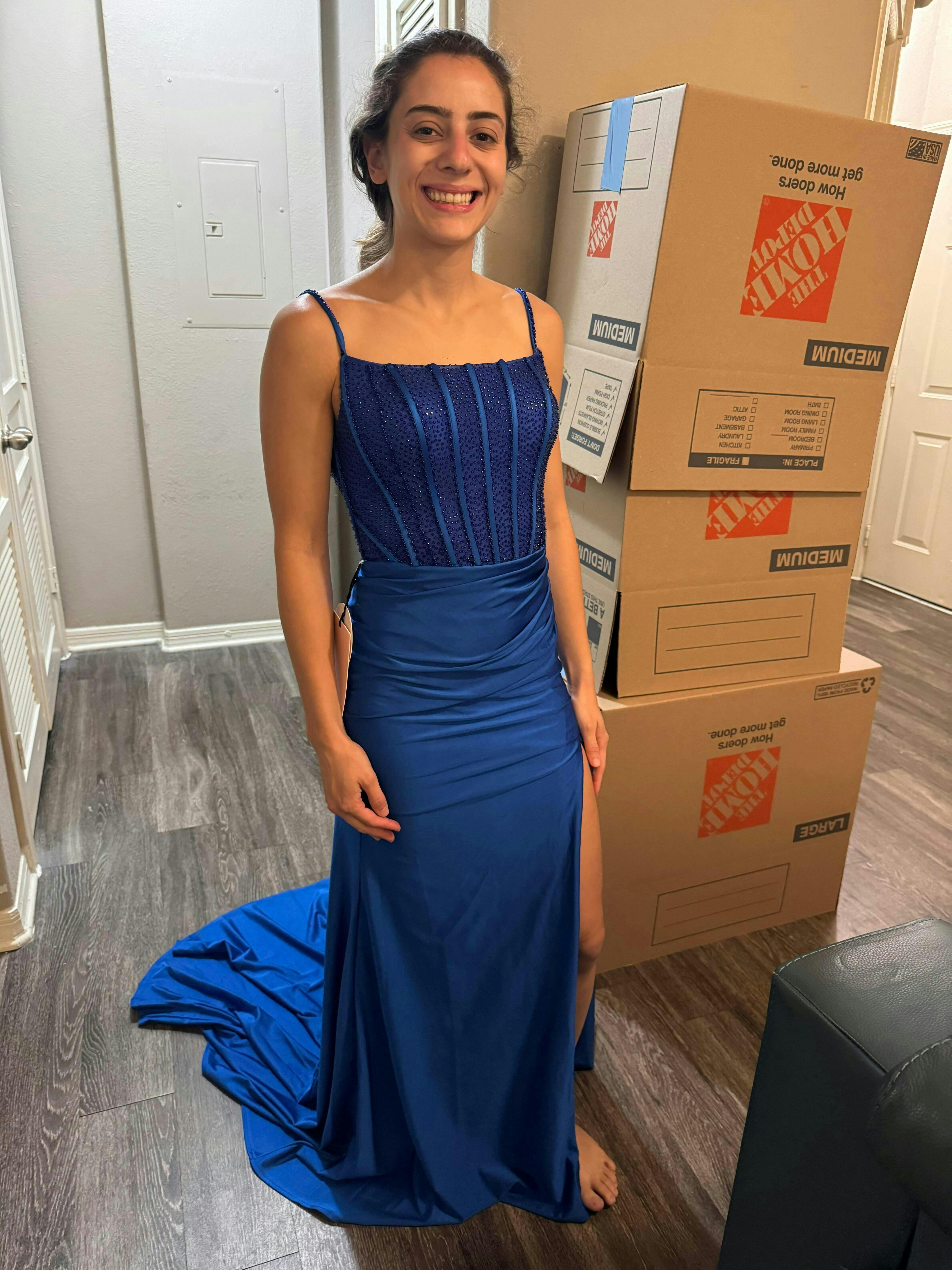 I am very satisfied with my Evening Gown,. I love the color. I have not worn it yet. The service was very good and I received the dress in a very short time. Had it made to my measurements. this is a gorgeous prom dress!! Fit really well, looks like I'm wearing a mirror!!! Well worth the money, so classy! Would buy again. Thank you.