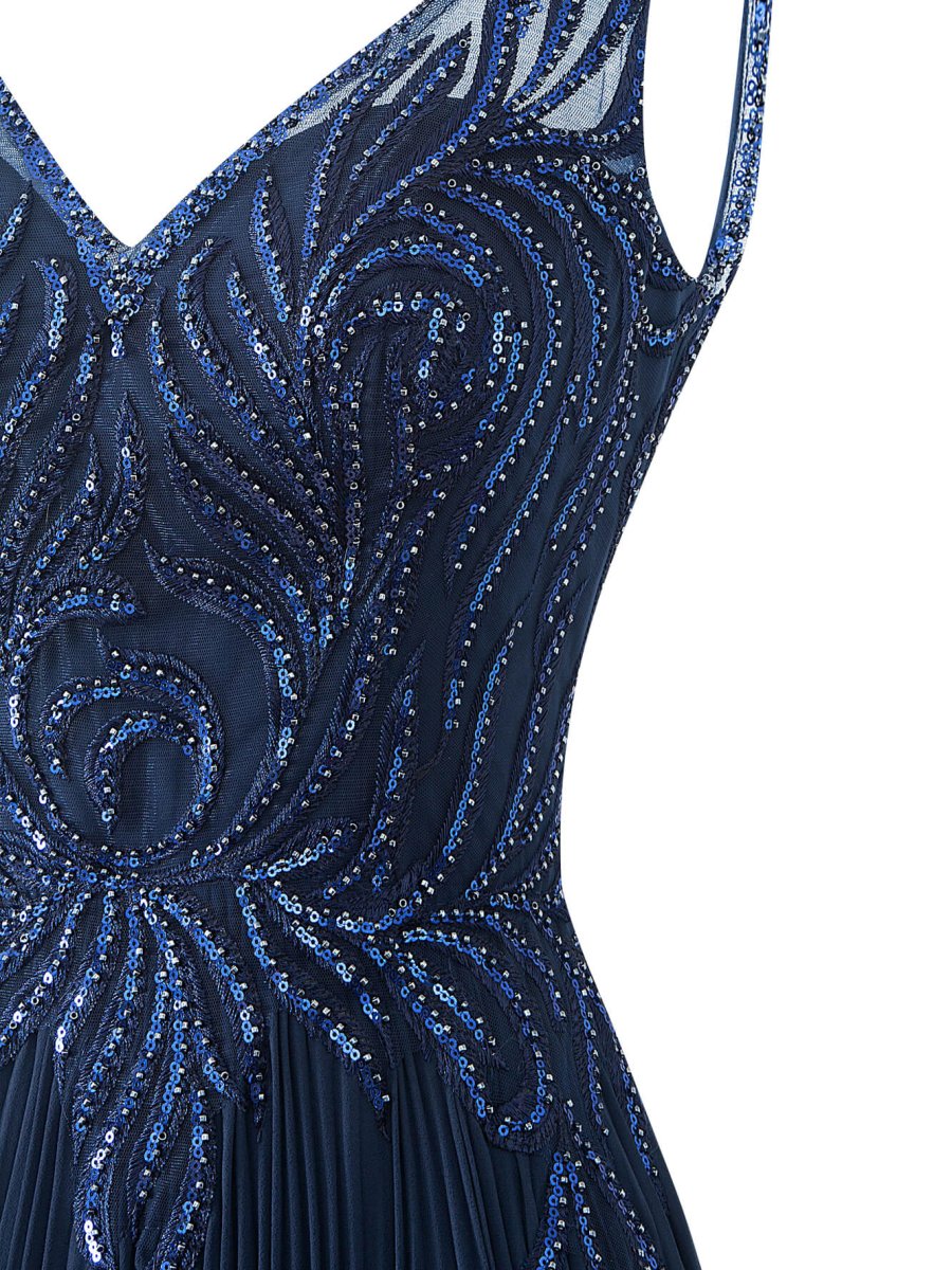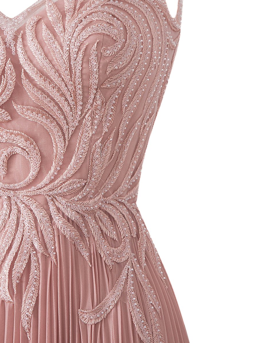 Introducing dress "Abigail" from Sevoba. a magnificent A-line V-neck Chiffon Prom Dress that impeccably captures timeless elegance. Crafted from superior crinkled chiffon fabric. "Abigail" guarantees not just style but also comfort. The flowing A-line style. combined with the floor length. creates a silhouette that's flattering for all body types. A beautifully designed V-neckline enhances your natural shape. and the intricate appliques and beadings. coupled with the glittering sequins. add an air of luxurious charm that will make your prom night truly unforgettable.