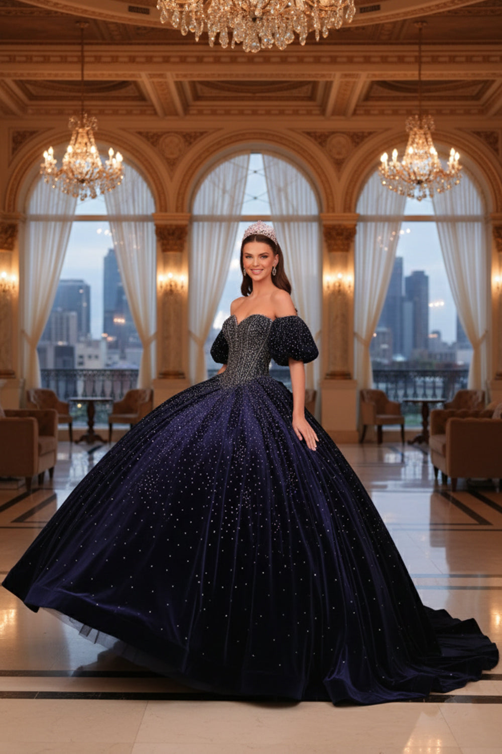 Luxurious Sparkle Ball Gown Cold Shoulder Quinceañera Dress | Sevoba