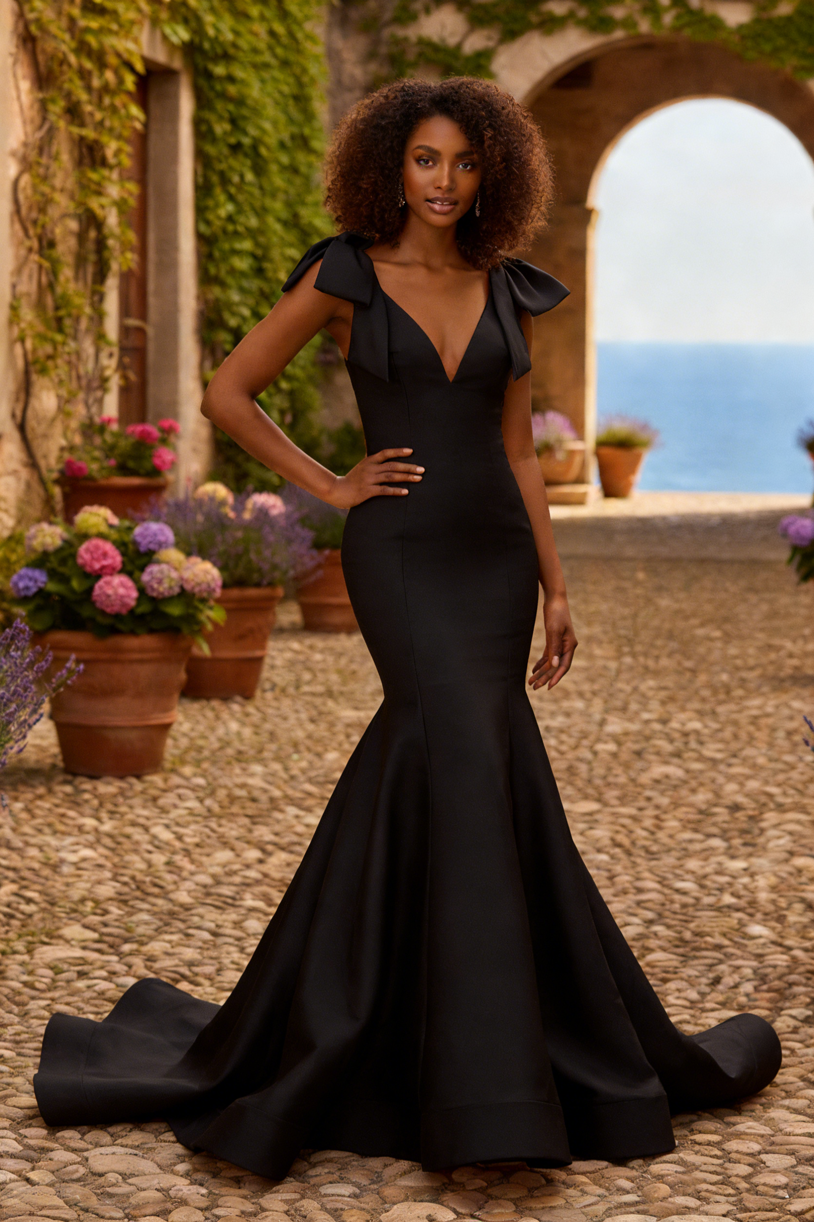 • Sleeve Style: Bow Accent Shoulder Straps