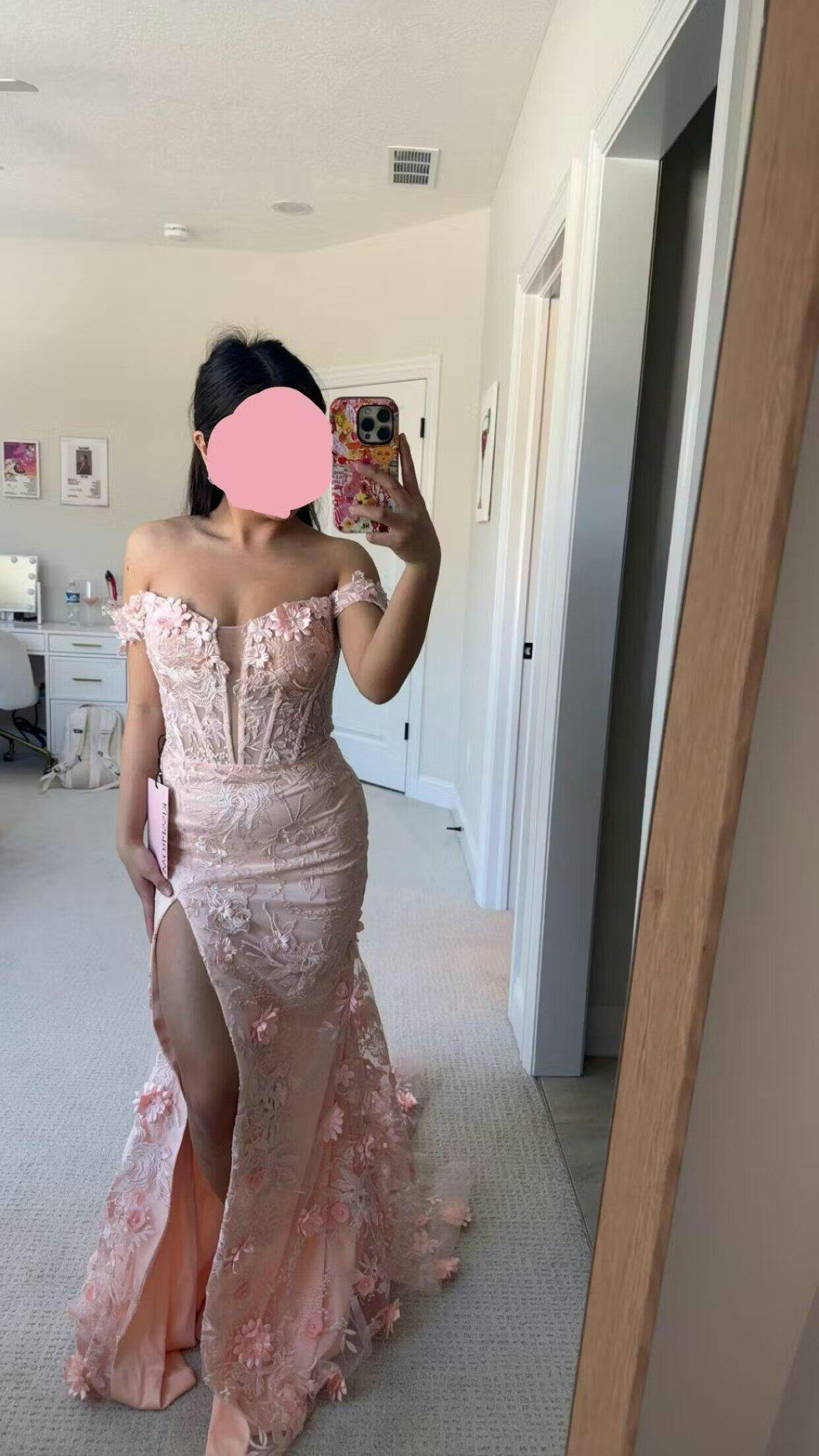 Unleash your inner goddess in the Off The Shoulder Floral Lace Long Prom Dress With Split. This dress is crafted from exquisite lace fabric and features a flattering mermaid silhouette that accentuates your curves while flowing gracefully to the ground. It is available in enchanting colors like sky blue. pink. and lavender. it offers a dreamy palette that complements any skin tone. A stylish choice suitable for both evening dresses and formal dresses. with its off-the-shoulder neckline adds a romantic touch. beautifully highlighting your shoulders and collarbone. Adorned with delicate floral appliques. the dress showcases intricate details that bring a whimsical charm to your look. The daring split adds a sultry element. allowing you to showcase your legs and create a striking visual as you walk. Embrace your beauty and elegance in the Off The Shoulder Floral Lace Long Prom Dress With Split!