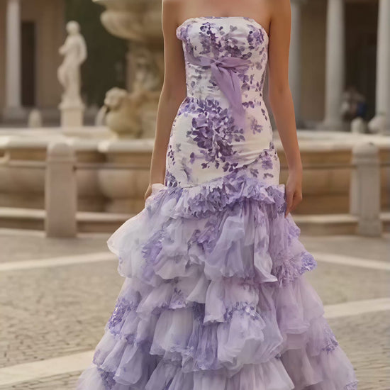 Strapless Floral Tiered Mermaid Prom Dress | Sevoba