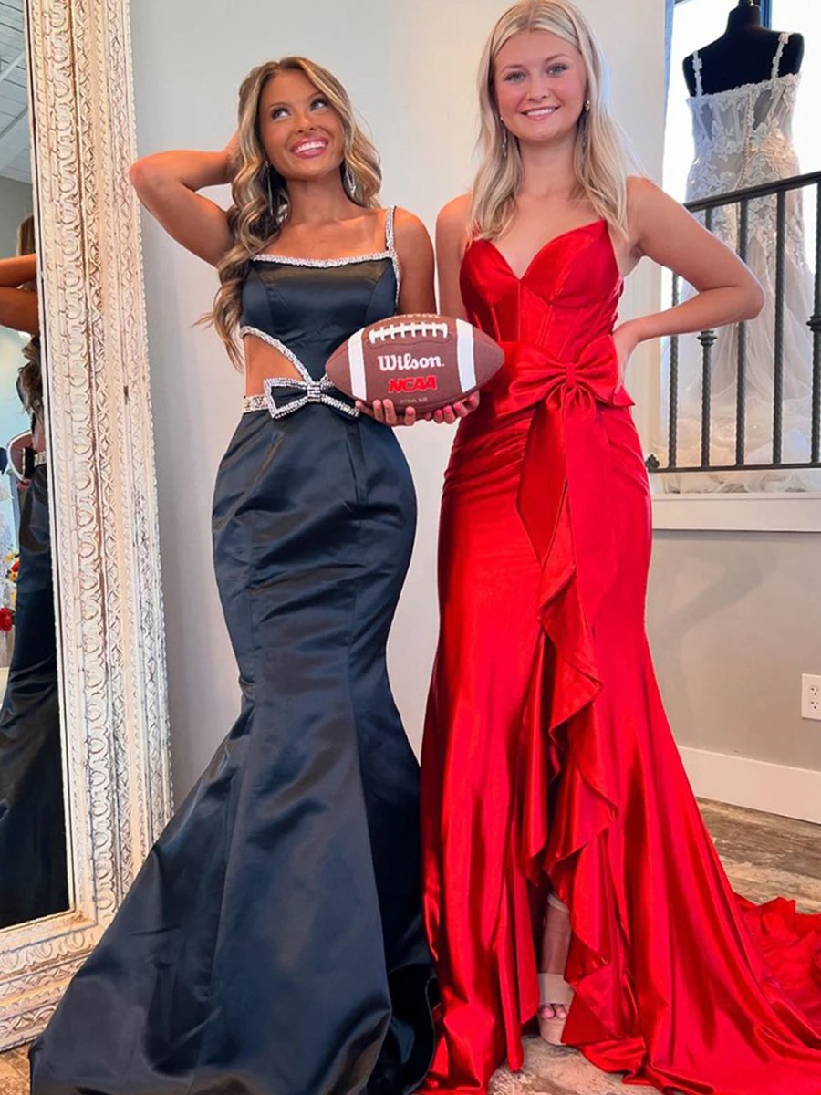 Step into elegance with this Scoop Neck Mermaid Beaded Long Prom Dress With Bow. This dress is designed in a flattering mermaid silhouette that highlights your figure. while the luxurious satin fabric adds a lustrous glow in vibrant shades of hot pink and sage. A scoop-neck neckline and sleeveless design enhance the dress's romantic appeal. perfect for prom. evening parties. or any special occasion. A stylish choice suitable for both evening dresses and formal dresses. with its floor-length dress is embellished with delicate beading and features a convenient zipper at the back for a secure fit. Embrace timeless beauty and sophistication with this affordable yet stunning formal dress.